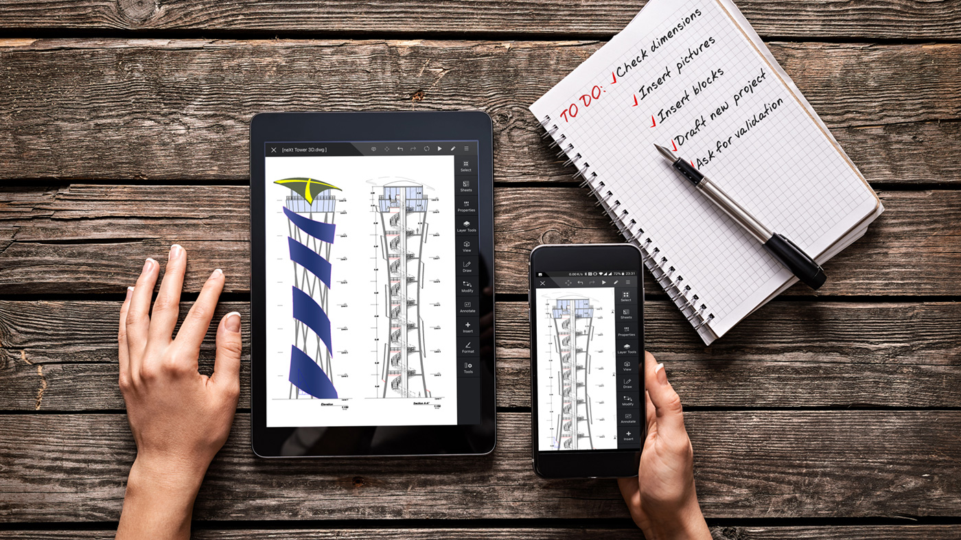 ARES Touch is the most complete CAD solution ever seen for your mobile device. Create and modify your DWG drawings on tablets and smartphones with a complete set of 2d drafting and annotation commands at hand. Its a full-featured Mobile CAD App that fits into your pocket and the perfect companion to quickly review a drawing shared in the cloud or received by email while on the go.